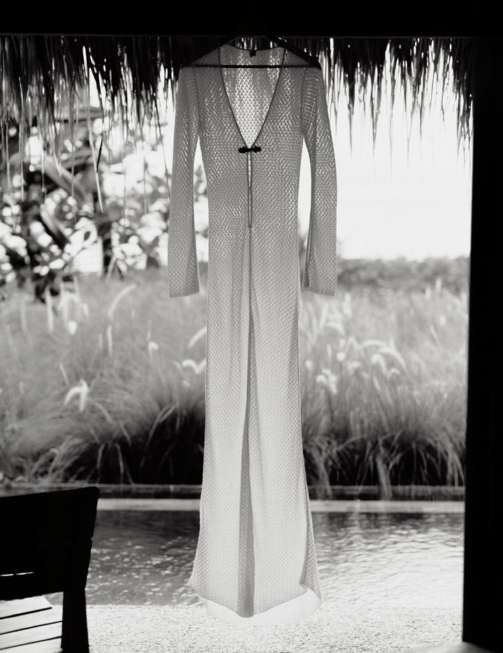 The Tanzania Dress is crafted from 100% organic cotton fabric. This pointelle knitted long dress is designed for a relaxed fit and shaped to a slim silhouette with a front slit, buckle details, and long sleeves featuring slits running up each side. Wear it on its own with slippers or slingbacks.