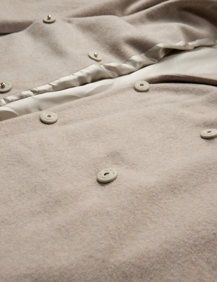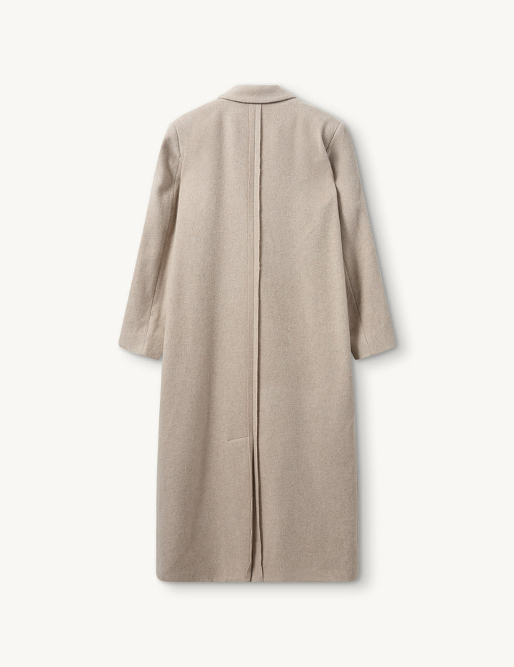 The Conrad Coat is a refined outerwear piece designed with a classic tailored silhouette and clean lines. It features a structured lapel, discreet welt pockets, and a mid-length cut for timeless versatility. Its minimalist design make it a cold-weather staple, easily layered over any look for understated elegance.