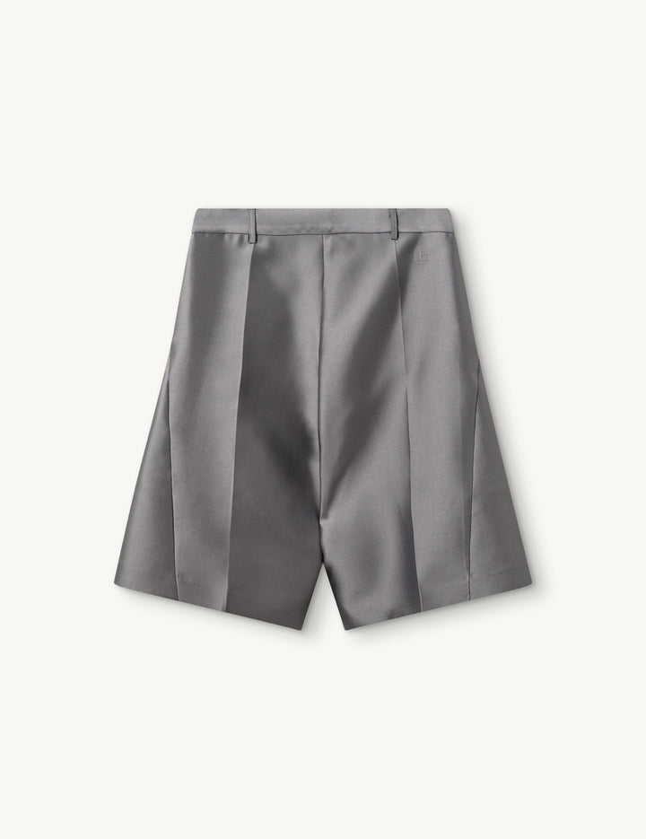 THE AMBRA SHORTS ARE TAILORED WITH CENTER FRONT AND BACK PRESSFOLDS AND A SIGNATURE LOGO EMBROIDERY ON THE SIDE. FINISHED WITH A SUBTLE SHEEN, THESE ELEGANT SHORTS ARE DESIGNED TO ELEVATE YOUR EVERYDAY WORDROBE.
