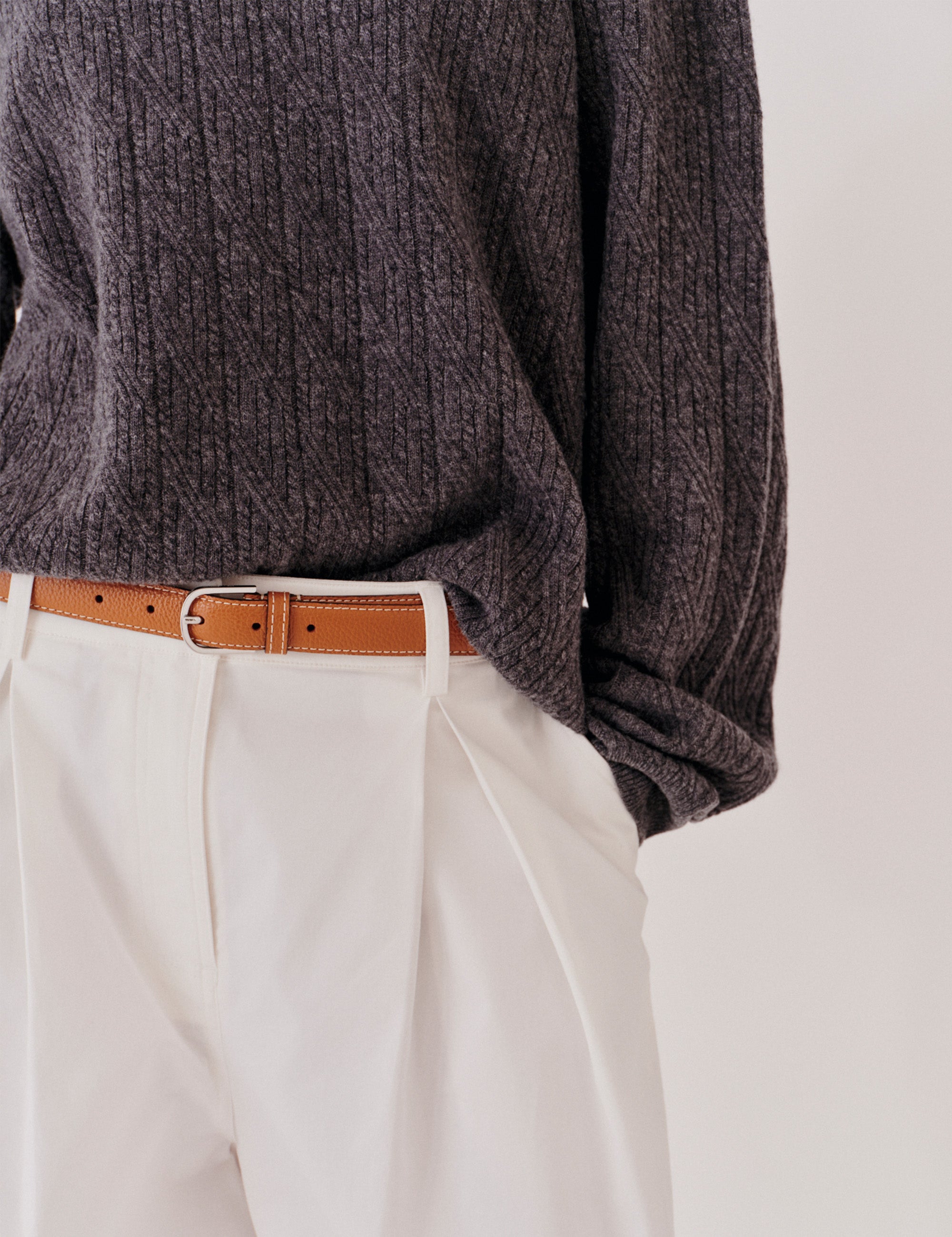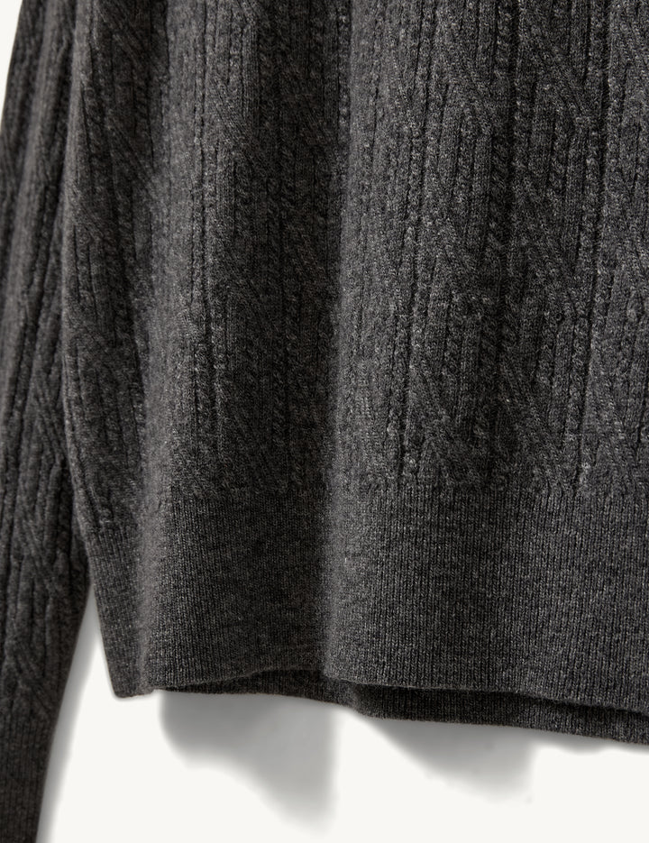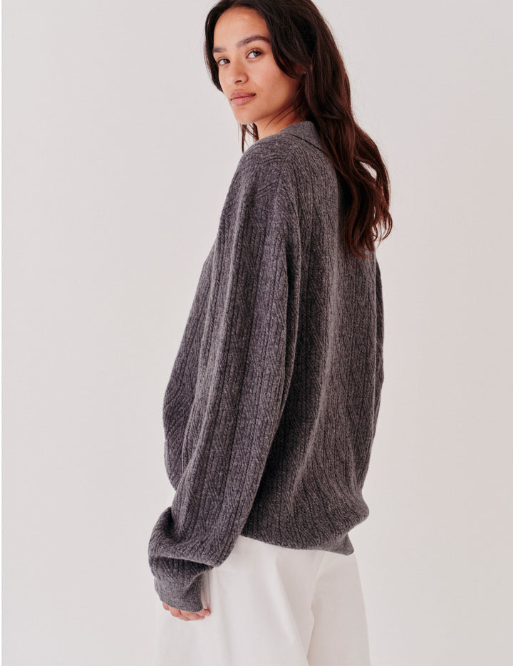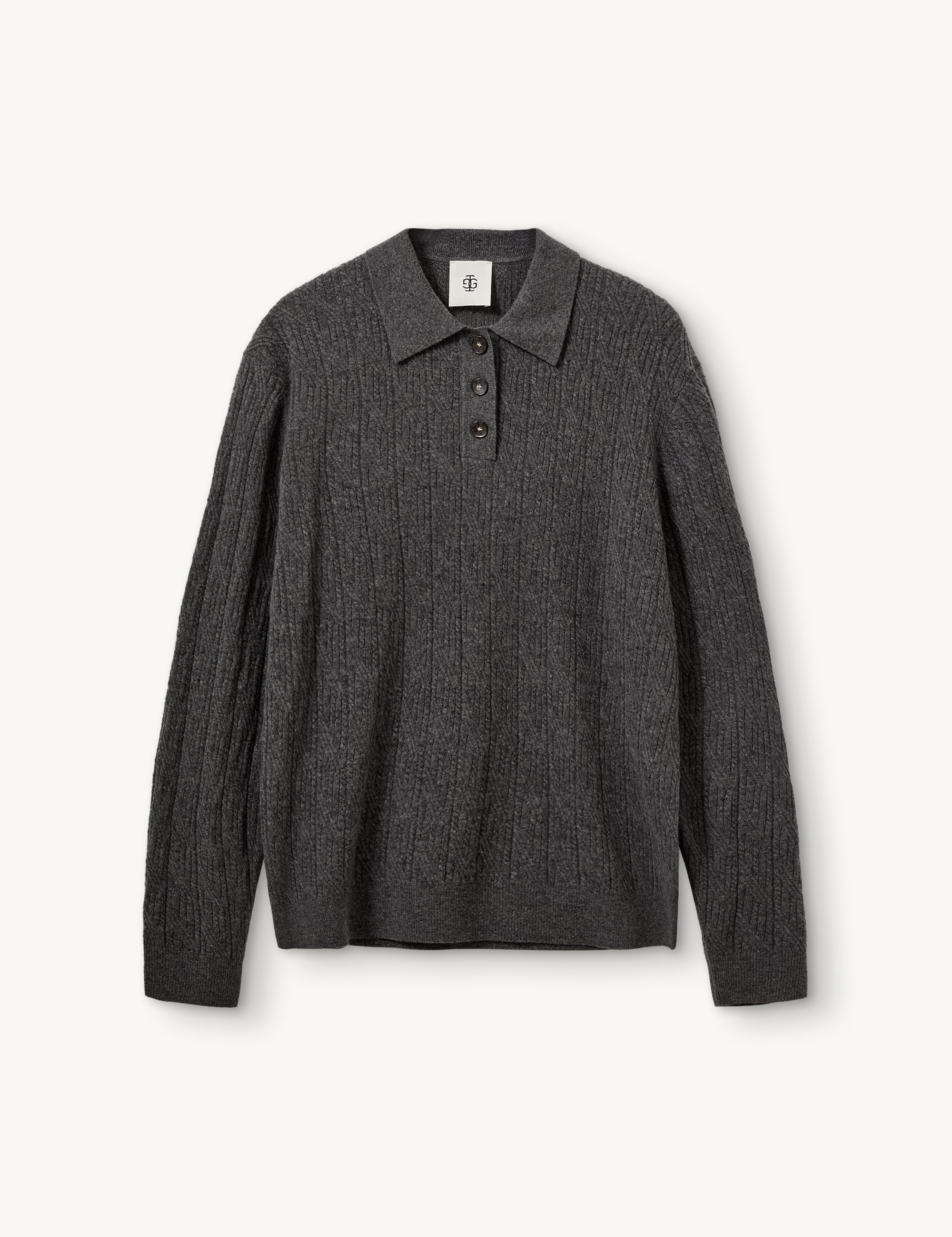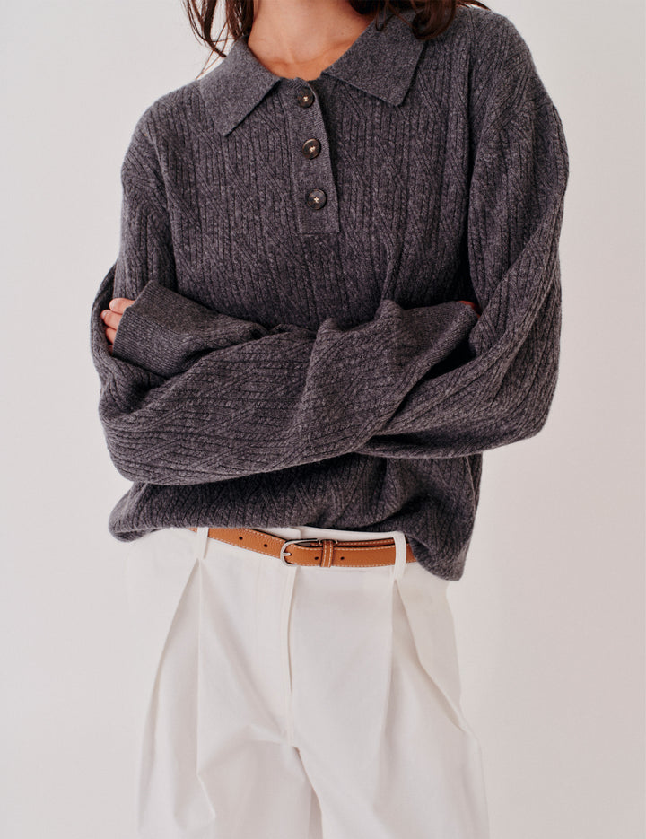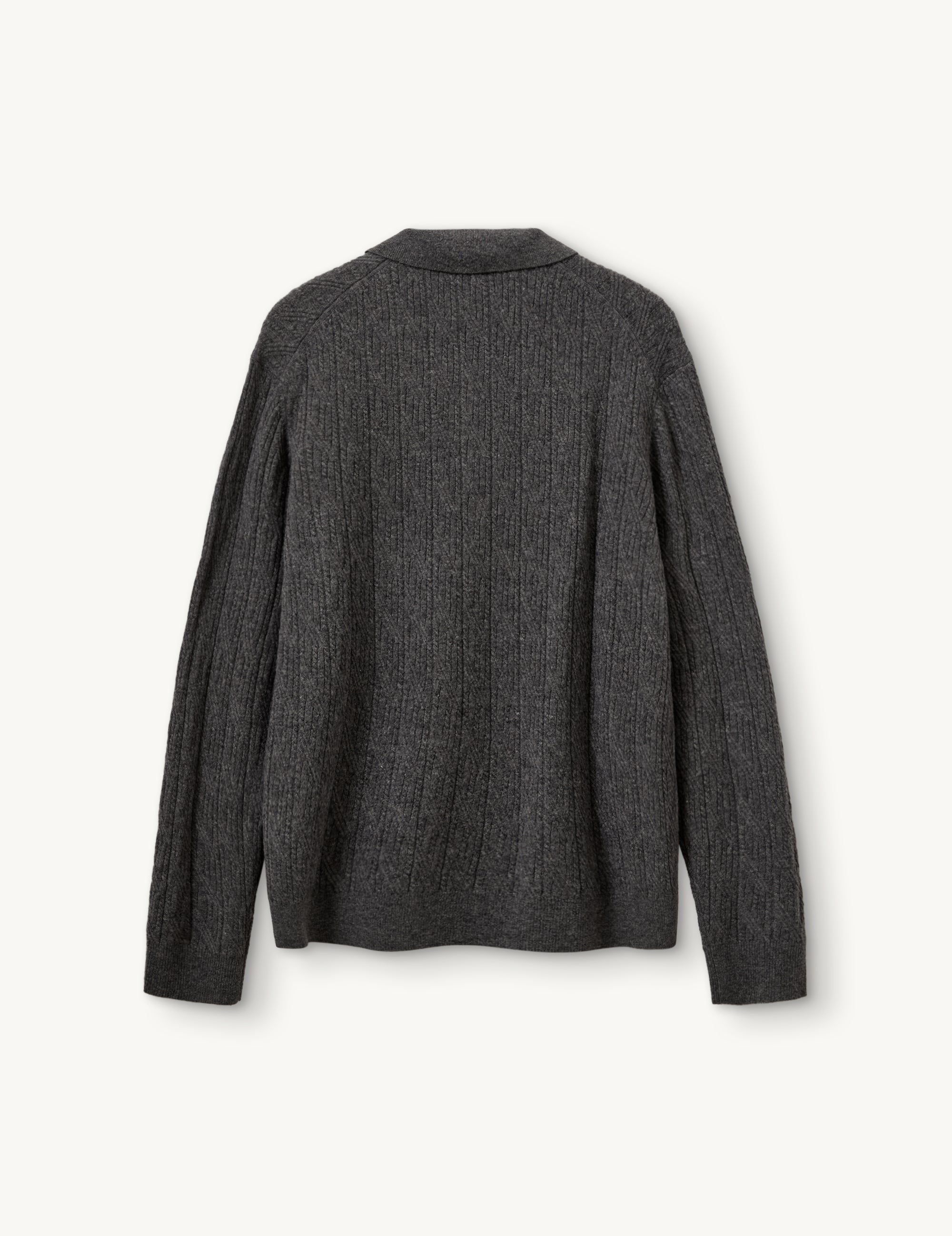 The Como Cable Polo is a soft knit sweater featuring a classic polo collar and cable detailing. Made from a luxurious wool-cashmere blend, it combines timeless style with cozy comfort.