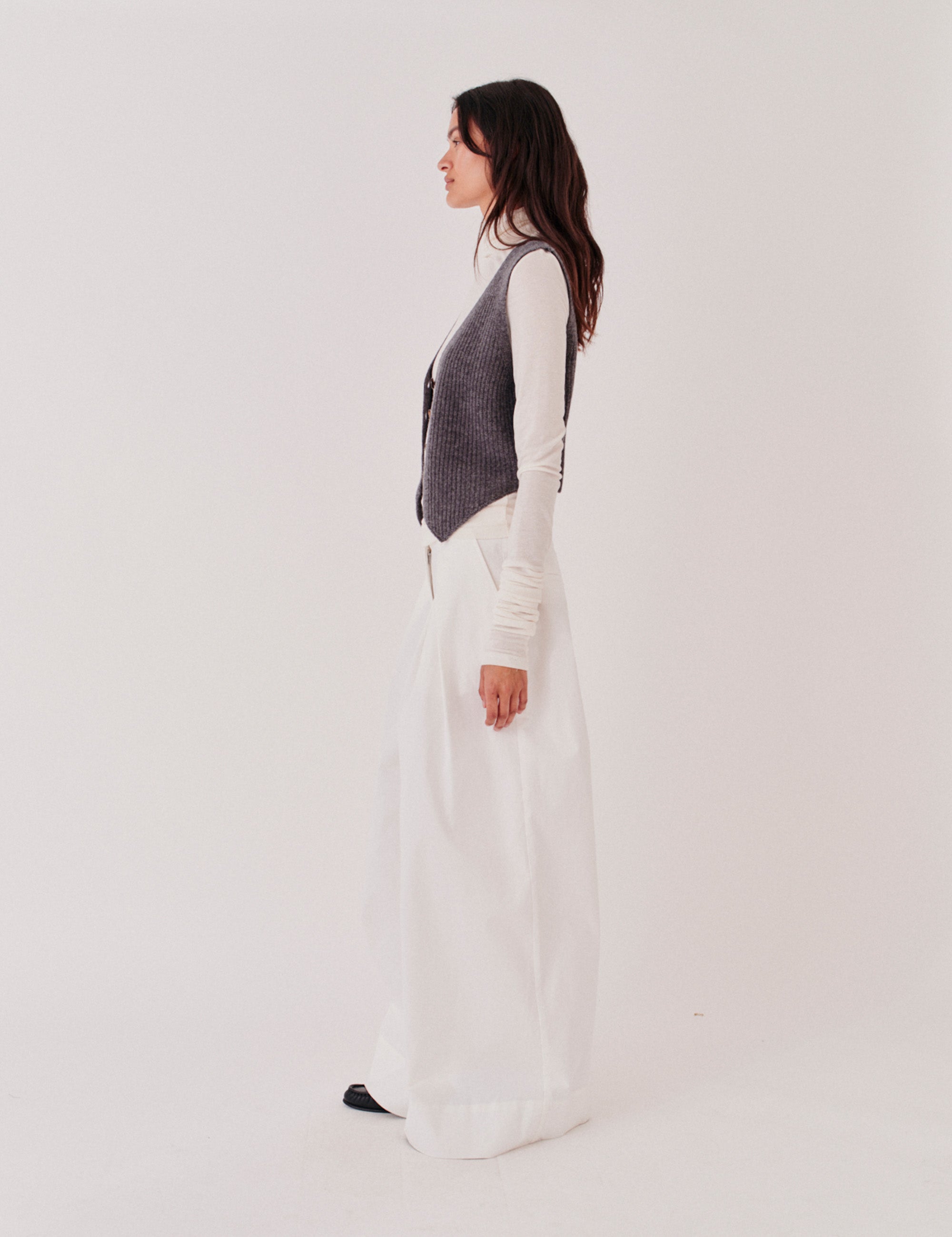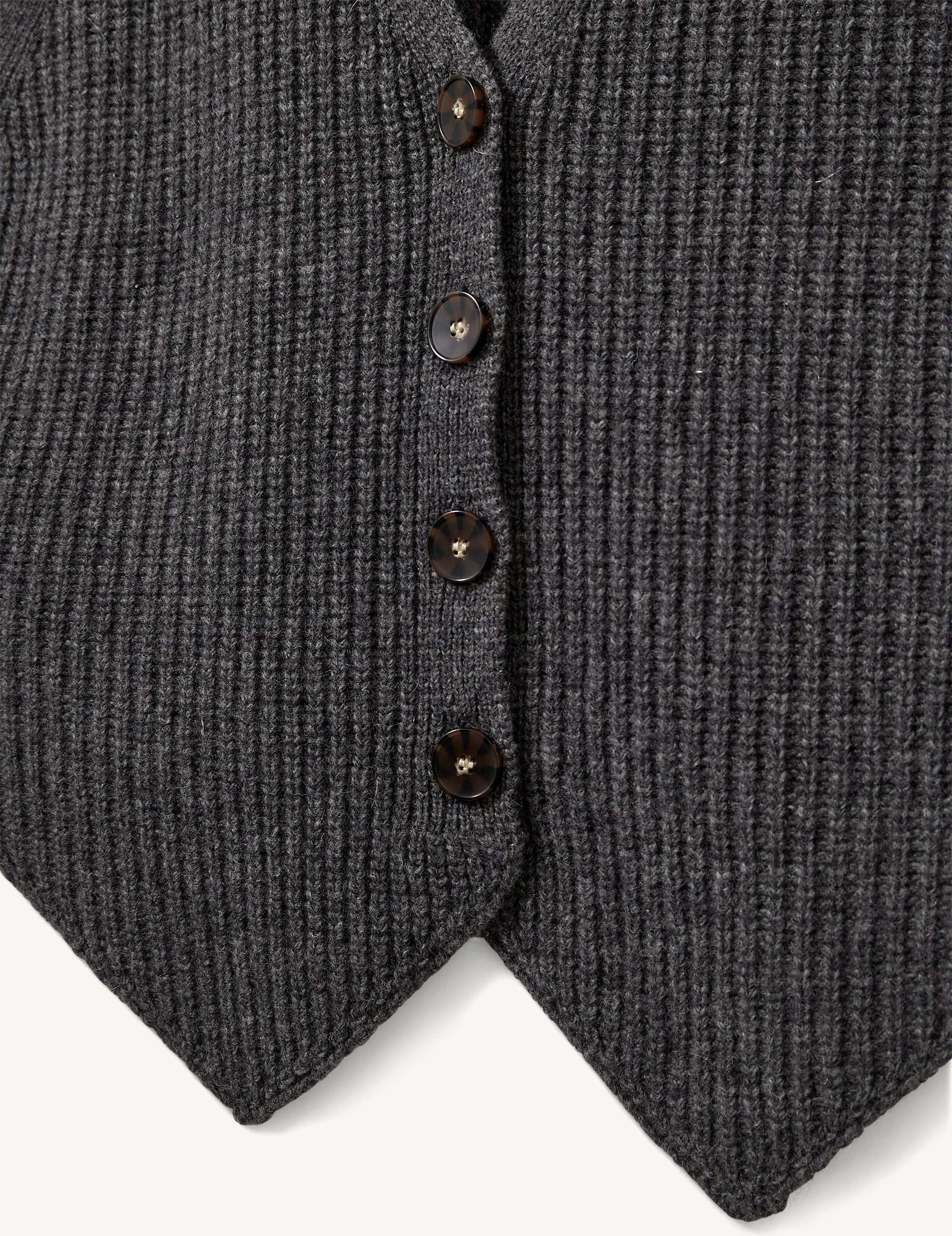The Como Rib Vest is a soft rib-knit style crafted from a warm wool blend. Its slim silhouette makes it perfect for layering or wearing on its own.