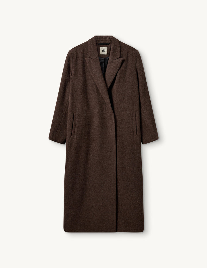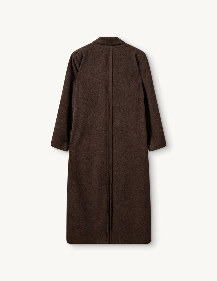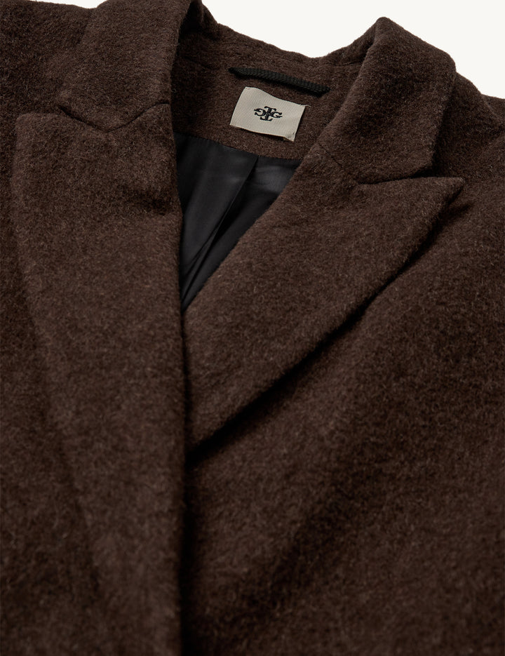 The Conrad Coat is a refined outerwear piece designed with a classic tailored silhouette and clean lines. It features a structured lapel, discreet welt pockets, and a mid-length cut for timeless versatility. Its minimalist design make it a cold-weather staple, easily layered over any look for understated elegance.