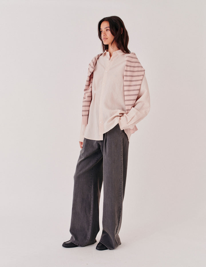 The Costa Shirt features an asymmetric draped button closure, adding a modern and sophisticated twist to a classic silhouette. Its unique design elevates everyday style with effortless elegance.