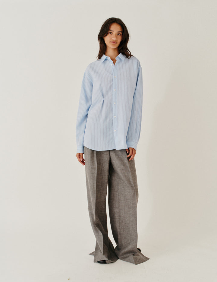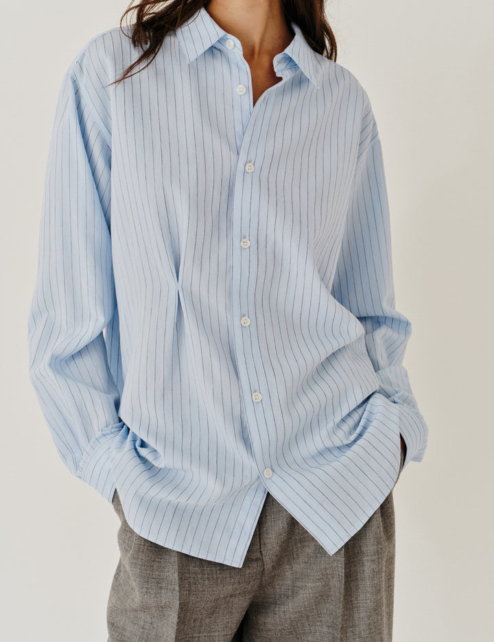 The Costa Shirt features an asymmetric draped button closure, adding a modern and sophisticated twist to a classic silhouette. Its unique design elevates everyday style with effortless elegance.