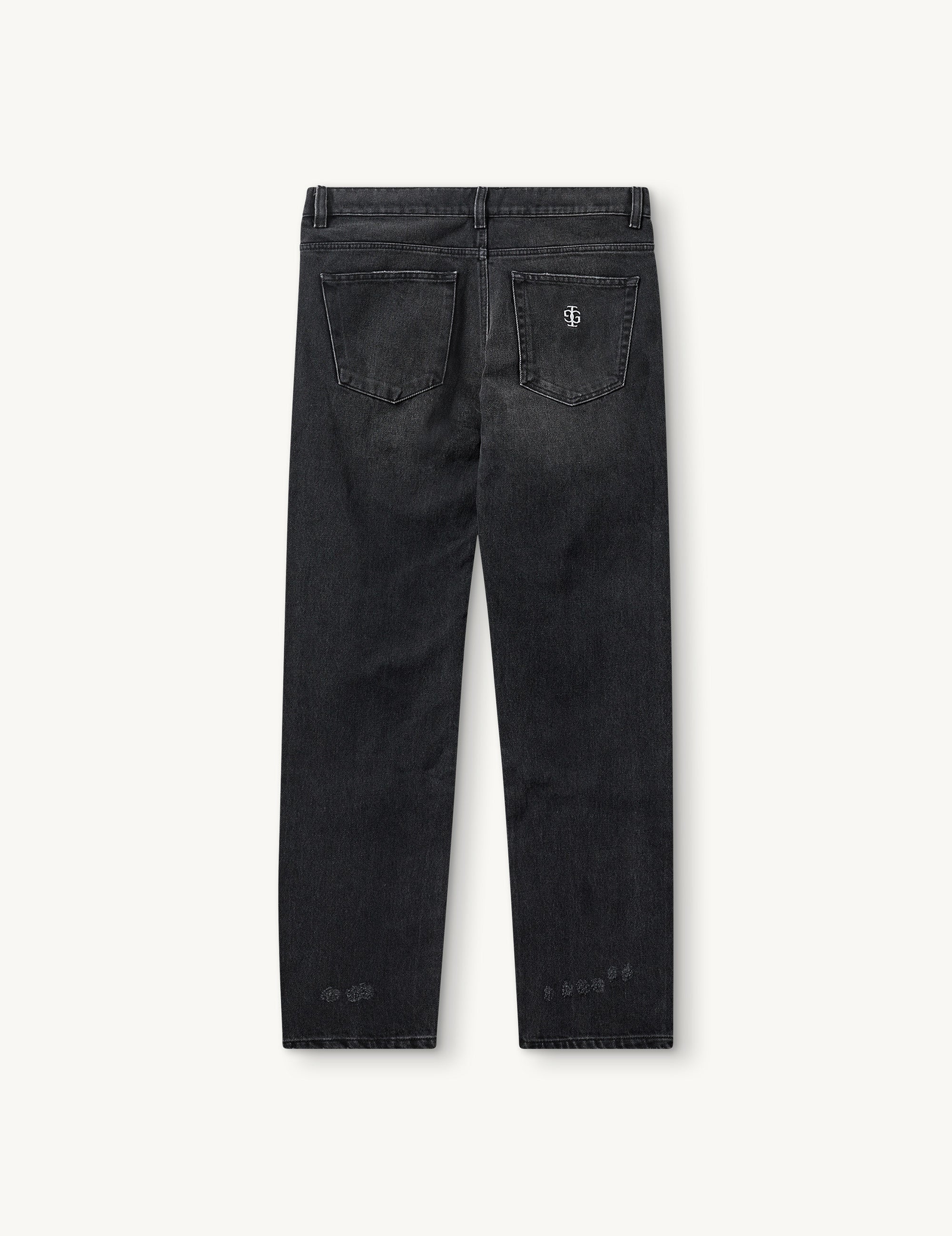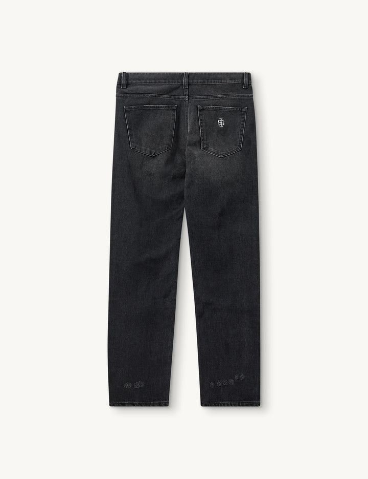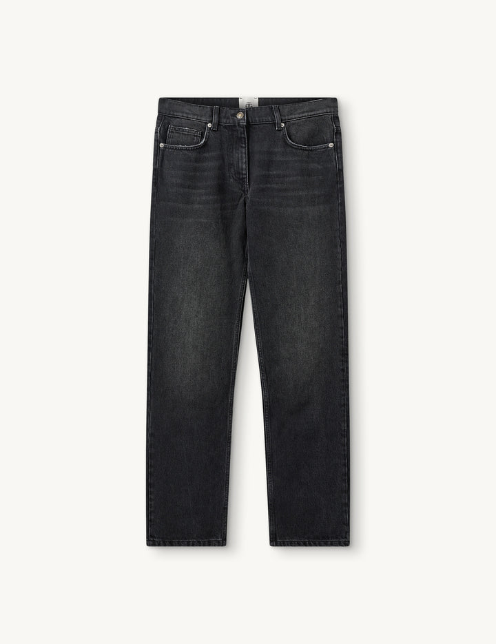THE DARCY DISTRESSED JEANS FEATURE A LOW-TO-MID WAISTLINE WITH SLIGHTLY WIDER, LONGER STRAIGHT LEGS. CRAFTED FROM 100% ORGANIC COTTON DENIM, THEY ARE FINISHED WITH FIVE POCKETS AND EMBROIDERED MONOGRAM DETAIL ON THE BACK POCKET.