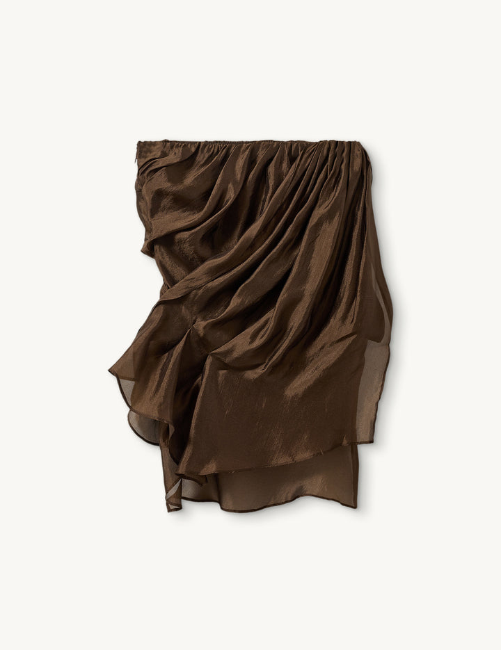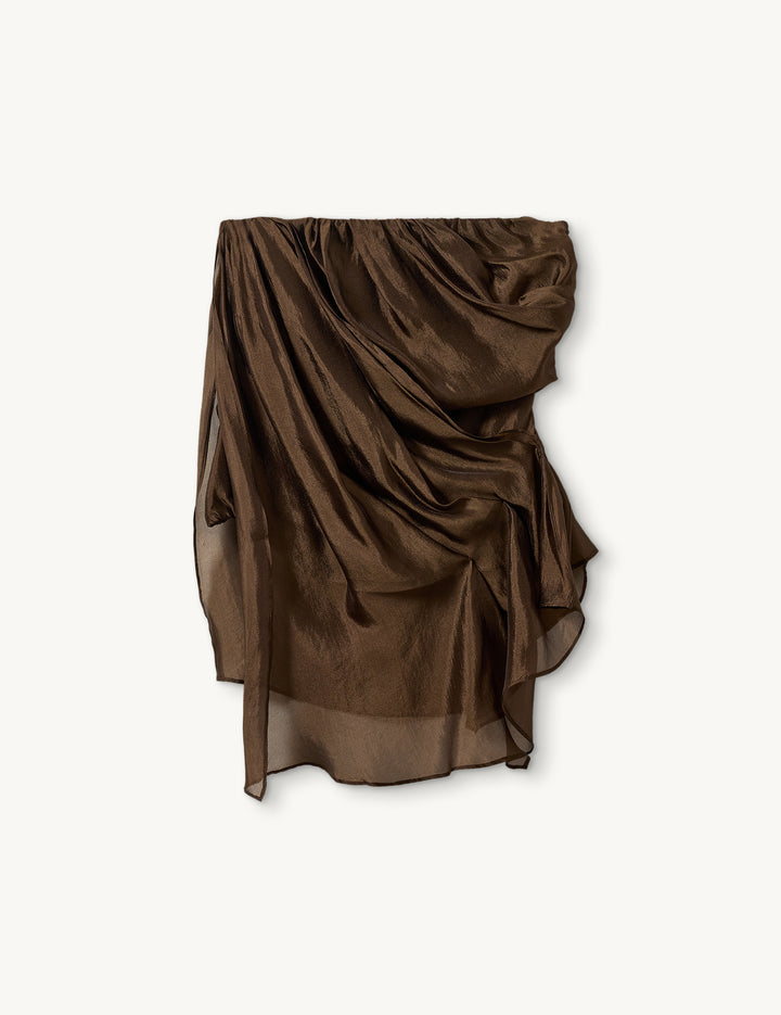 THE GILIAN BUSTIER COOPERATES TWO LAYERS OF FABRIC THAT CREATE A FLOWY, DRAPPED EFFECT WHILE REMAINING FITTED AND FLATTERING. DESIGNED WITH AN ASYMMETRIC CUT, IT EFFORTLESSLY ELEVATES ANY LOOK WITH UNDERSTATED ELEGANCE.