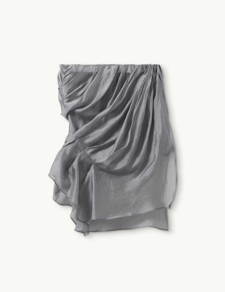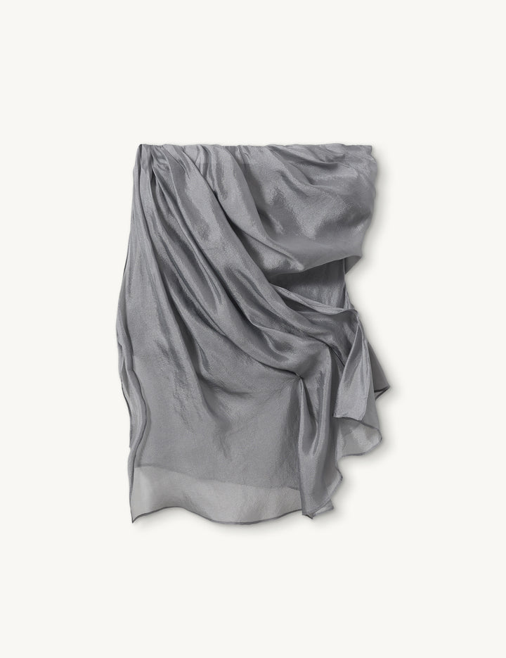 THE GILIAN BUSTIER COOPERATES TWO LAYERS OF FABRIC THAT CREATE A FLOWY, DRAPPED EFFECT WHILE REMAINING FITTED AND FLATTERING. DESIGNED WITH AN ASYMMETRIC CUT, IT EFFORTLESSLY ELEVATES ANY LOOK WITH UNDERSTATED ELEGANCE.