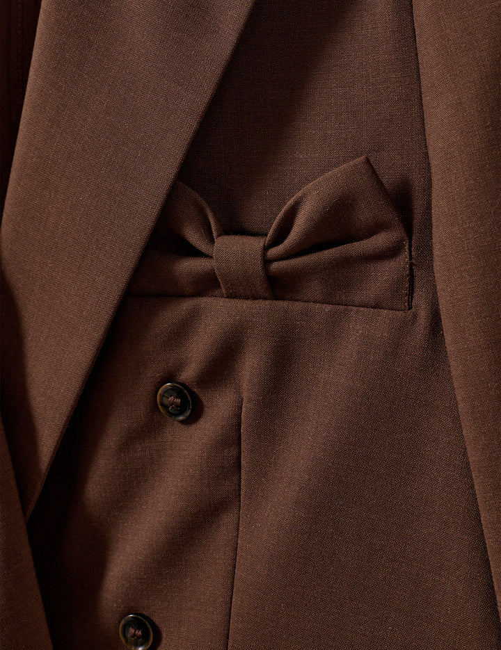 THE GRAND BLAZER IS A CRAFTED STATEMENT PIECE, DISTINGUISHED BY A FEMININE BOW DETAIL ON THE CHEST POCKET.