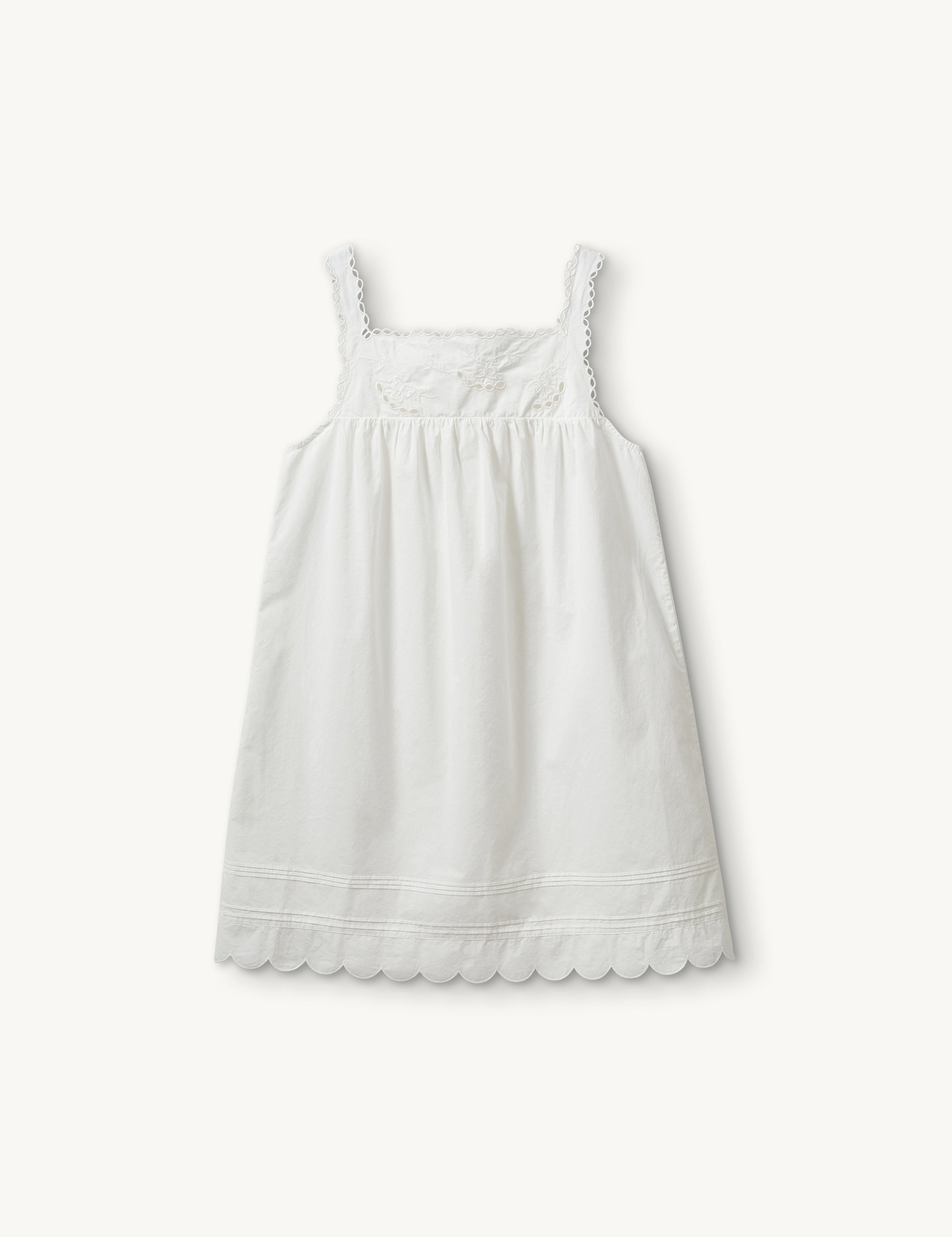 The Kirsten Babydoll Dress is a charming statement piece. An embroidery-detailed short dress with lace trimming that brings delicate texture and playful volume, creating a feminine and whimsical silhouette.