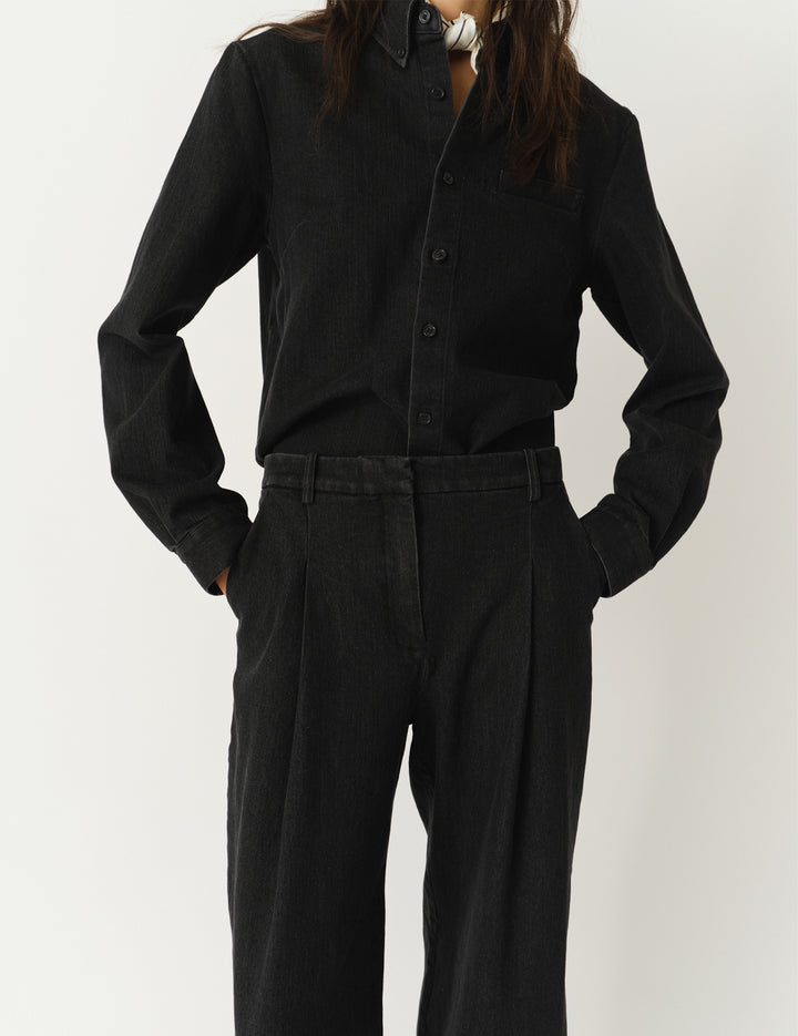 THE MERCI ANAGRAM PANTS ARE HIGH-WAISTED TAILORED TROUSERS DESIGNED FOR VERSATILITY. STYLE THEM ELEGANTLY FOR A REFINED LOOK OR CASUALLY FOR EVERYDAY WEAR.