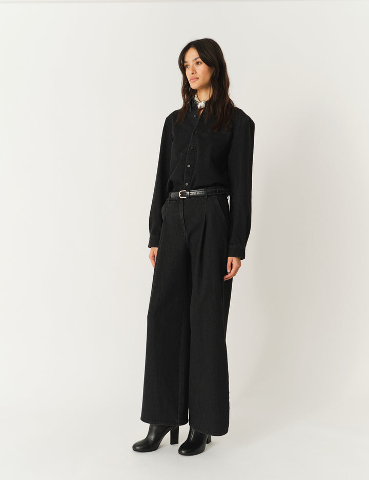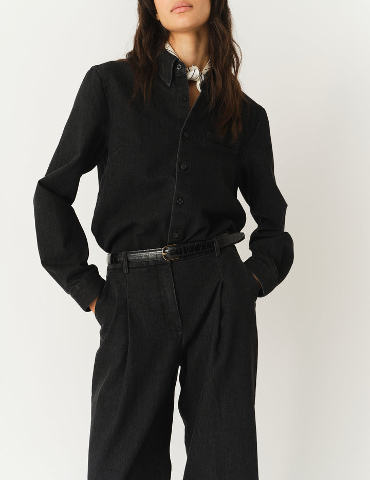 THE MERCI PLACKET SHIRT COMBINES A CASUAL DENIM OPTIC WITH EFFORTLESS CHIC. IT FEATURES A STRUCTURED COLLAR, BUTTON PLACKET AND A CHEST POCKET DETAIL.