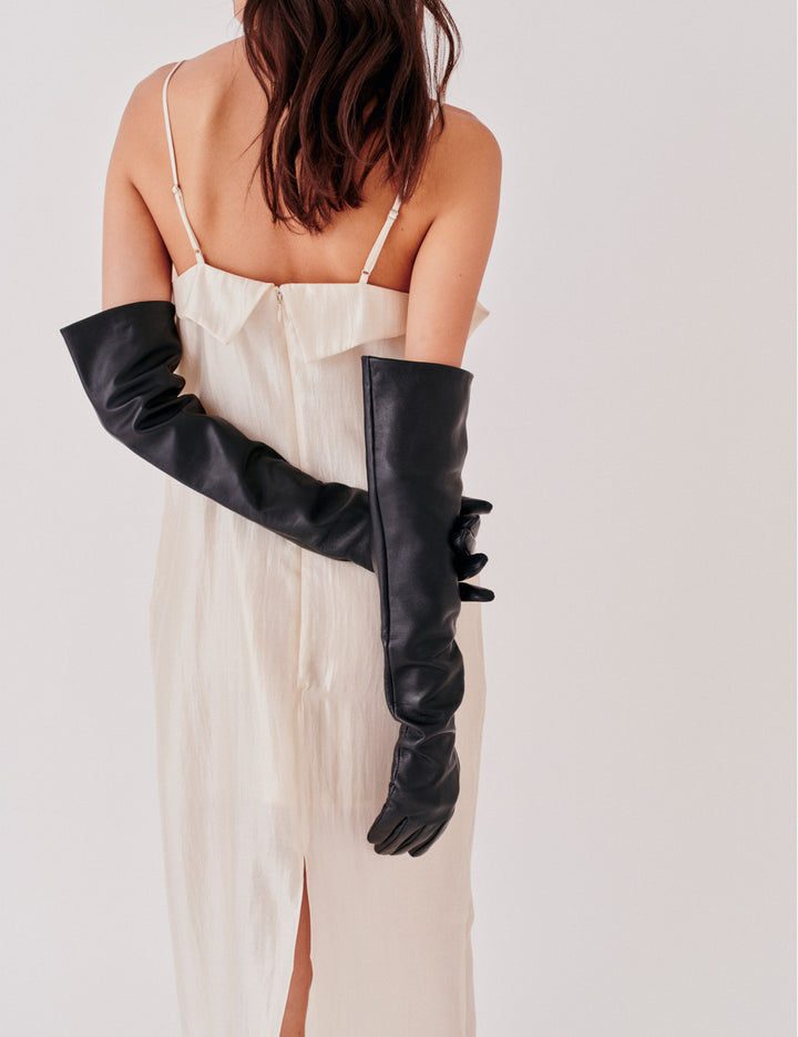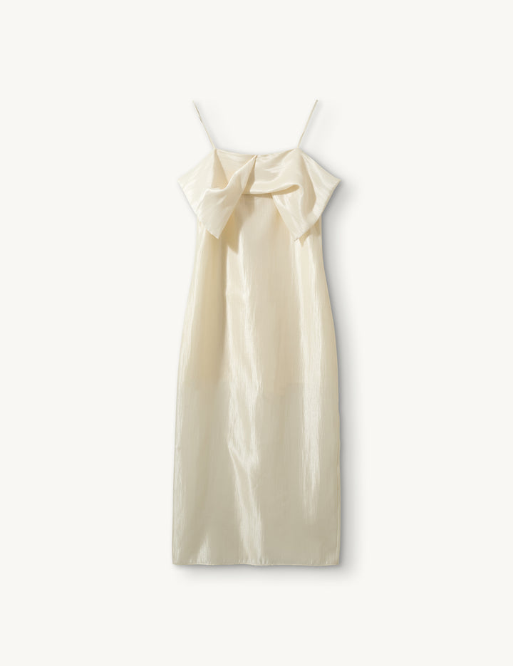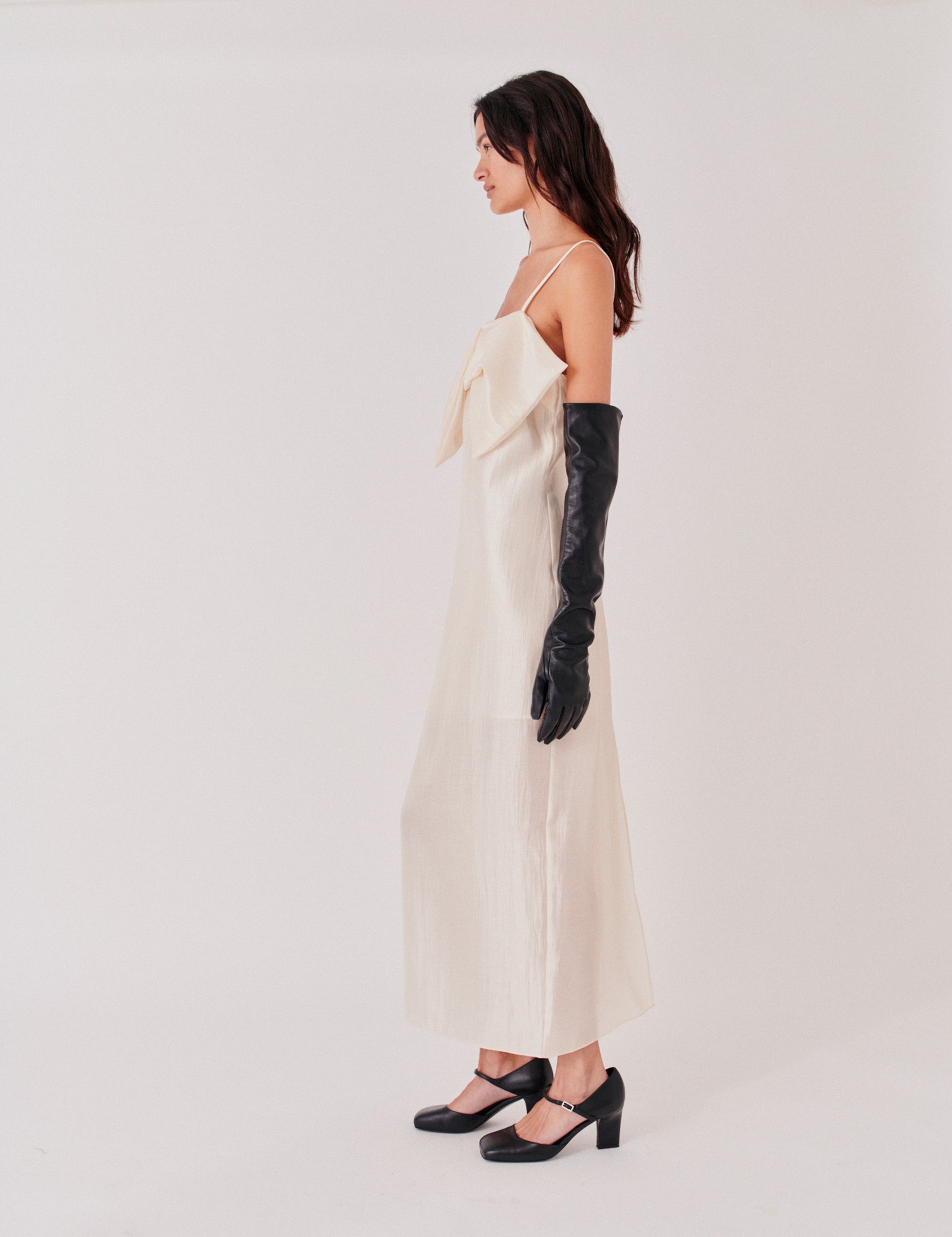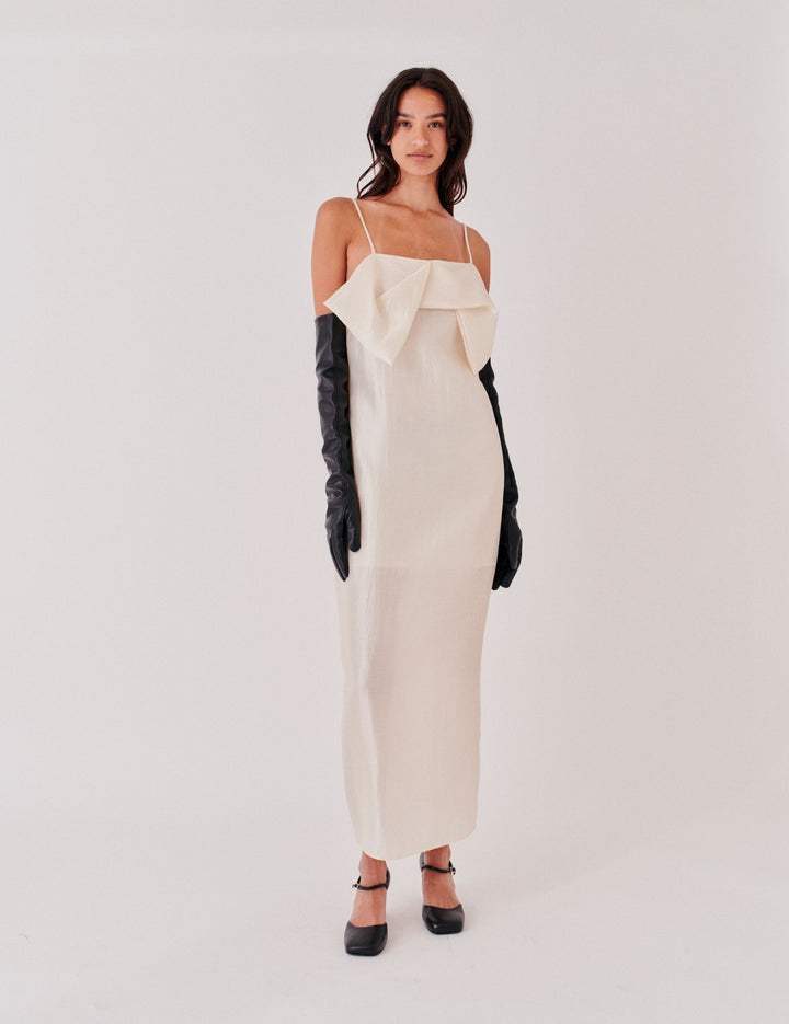 The Porcha Drape Dress is a long, flowing dress featuring a beautifully draped front for an elegant and sophisticated silhouette.