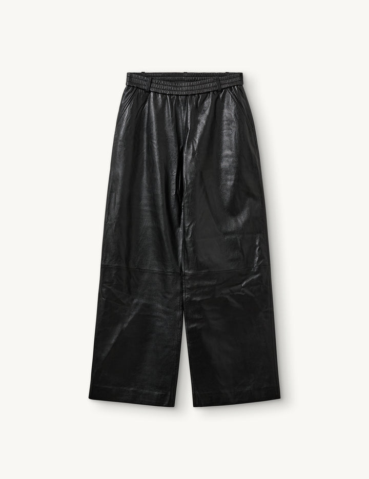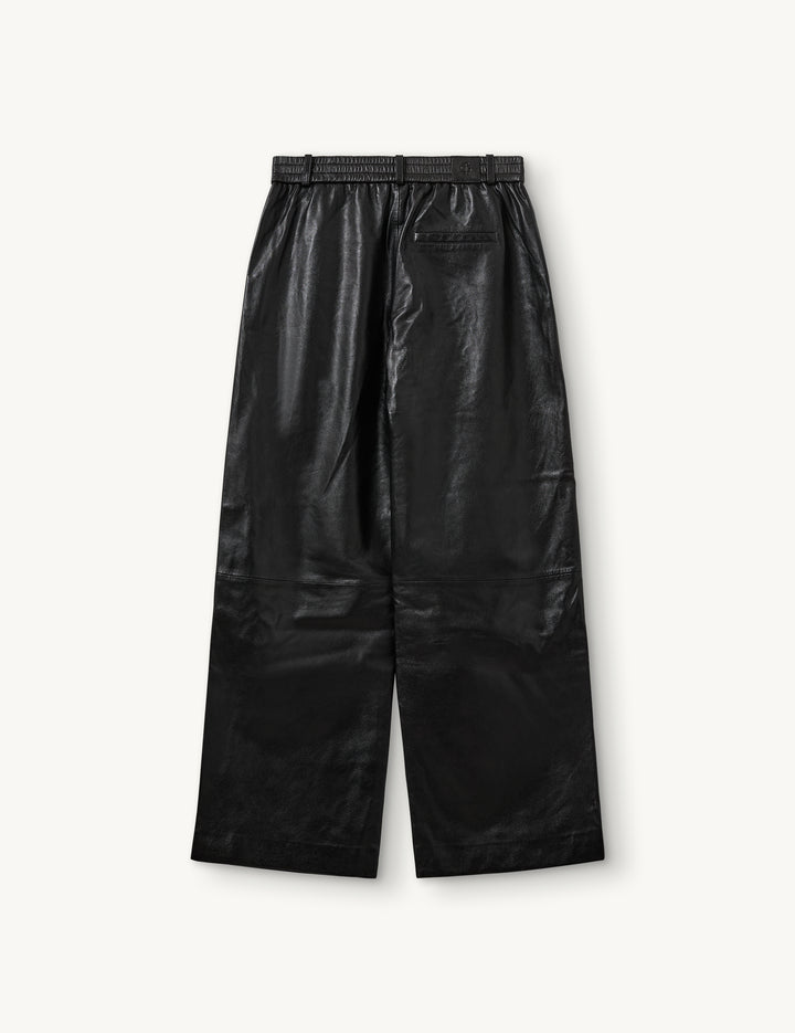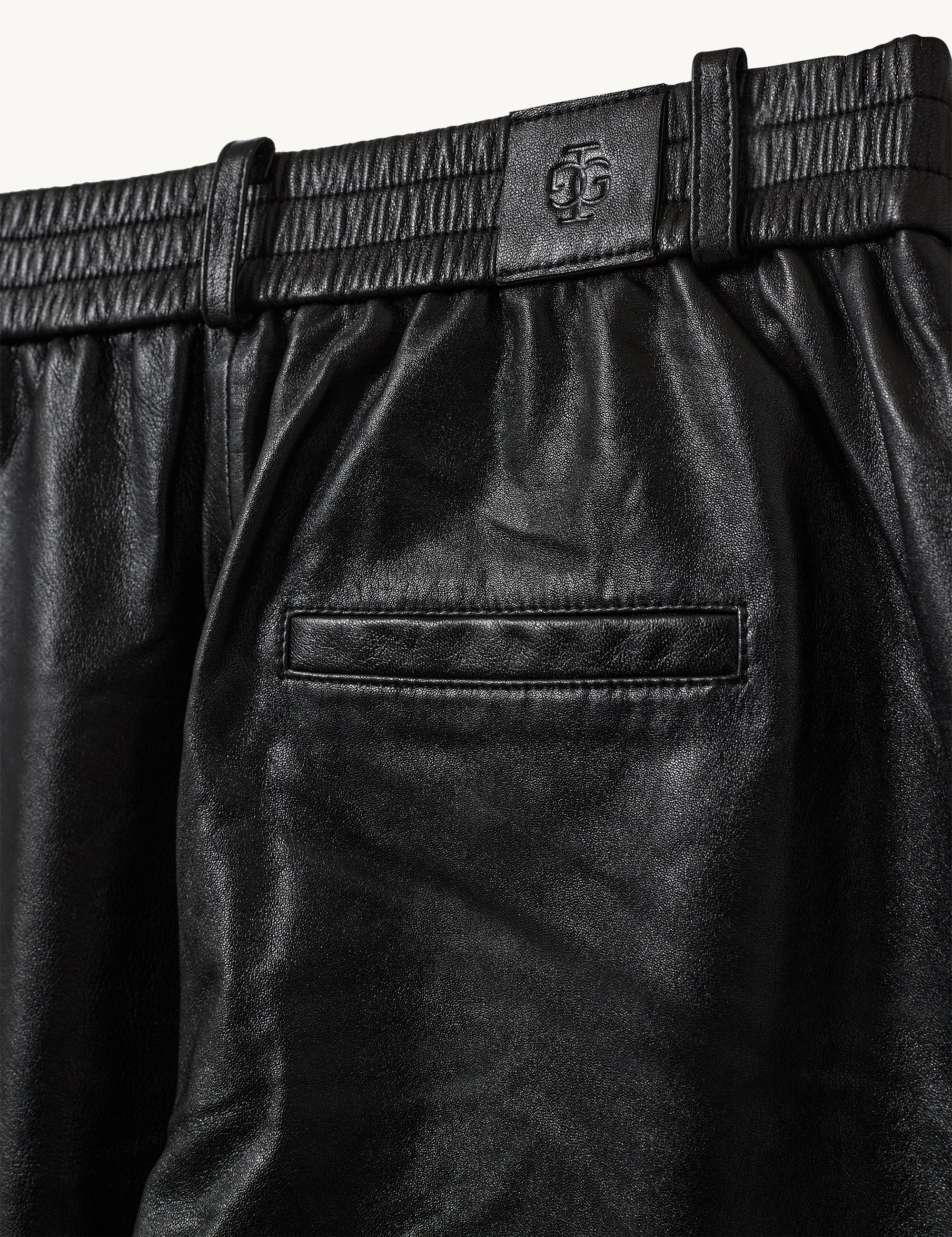 The Soho Sweat Pants are crafted from 100% lambskin leather, offering a soft and luxurious feel. Featuring an elastic waistband, they combine comfort with edgy, modern style.