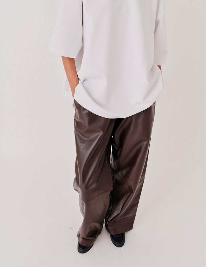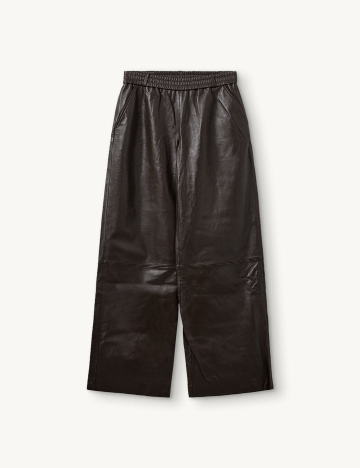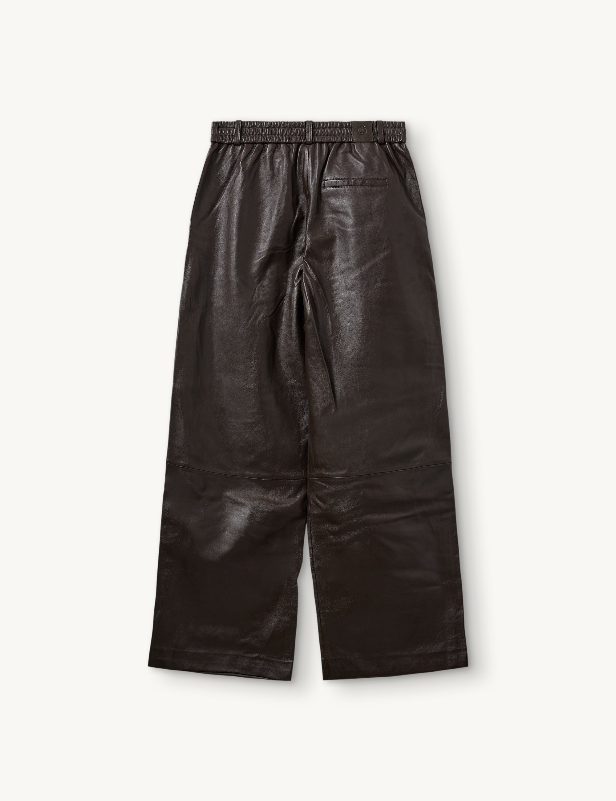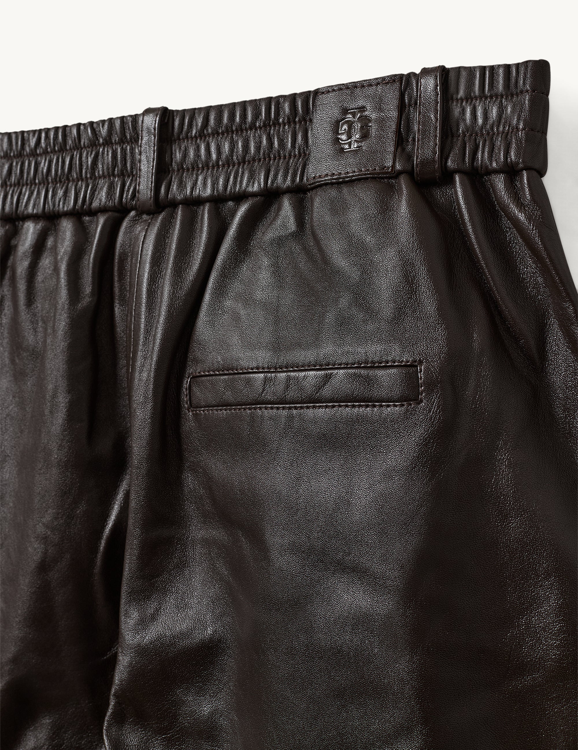 The Soho Sweat Pants are crafted from 100% lambskin leather, offering a soft and luxurious feel. Featuring an elastic waistband, they combine comfort with edgy, modern style.