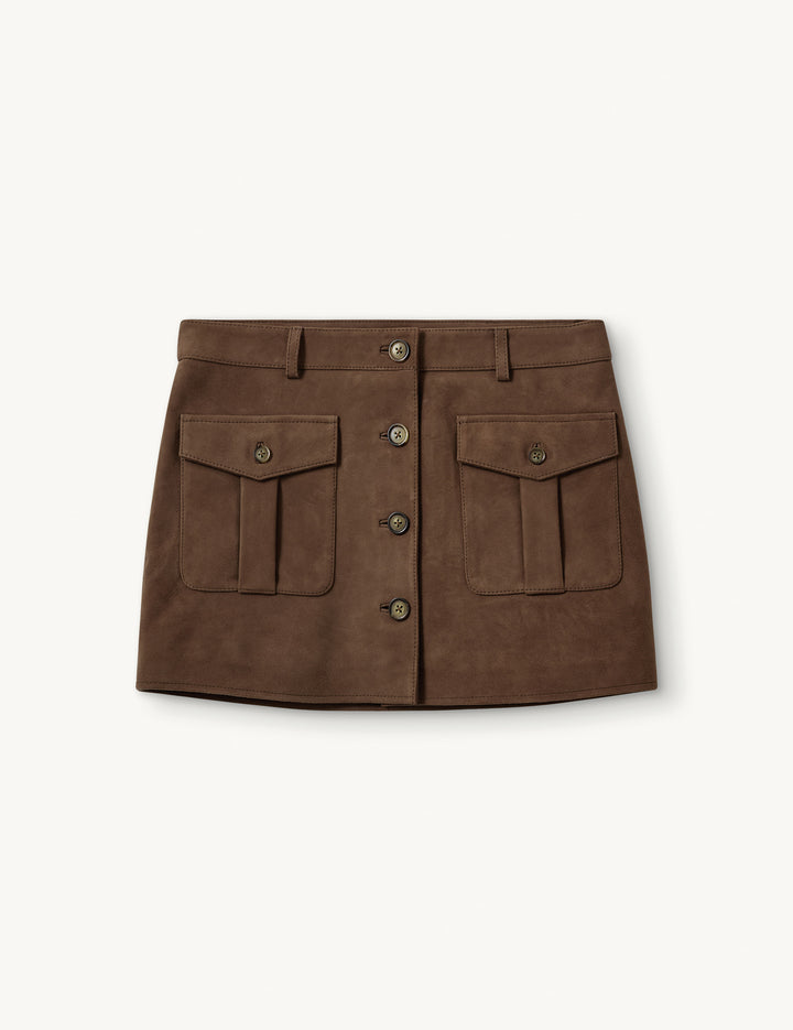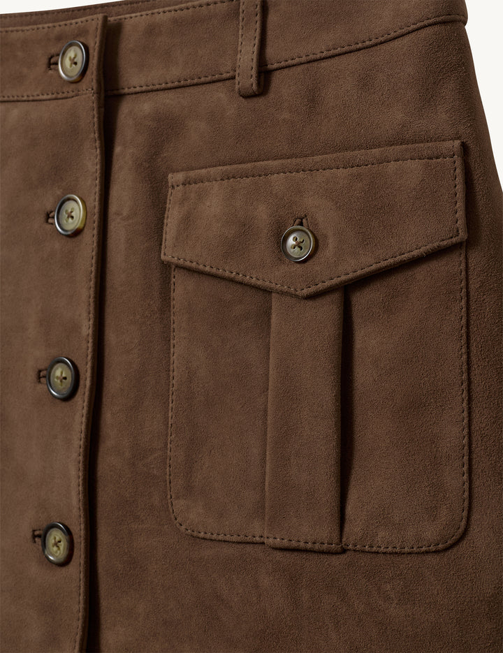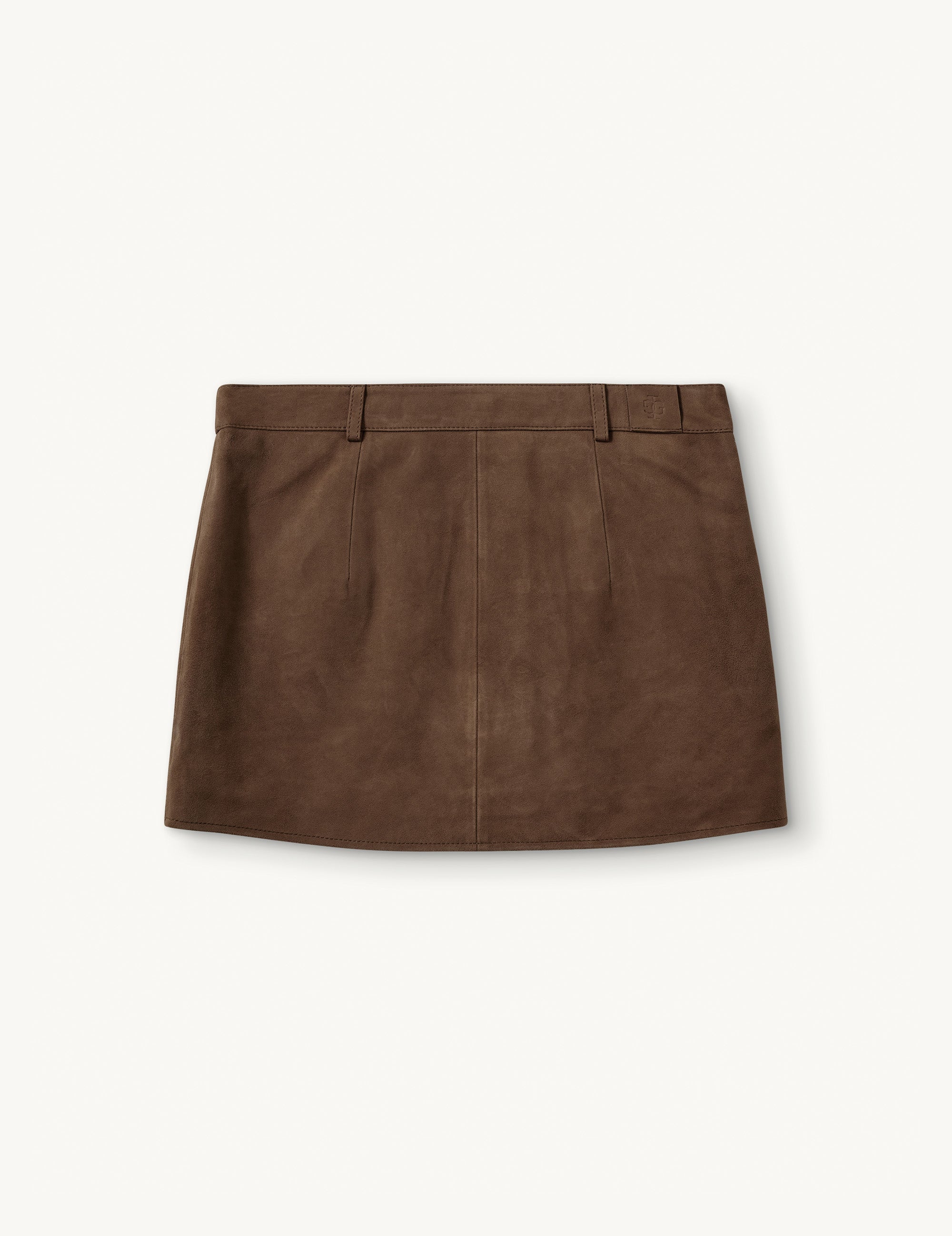 Crafted from 100% goatskin suede, the elegant Suede Mini Skirt is a statement piece with a decorative front button row, two big pockets for a practical touch and a belt option for added styling.