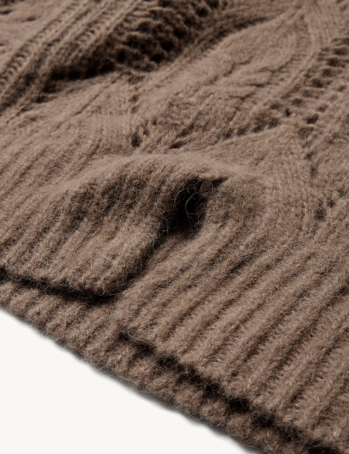 The Verbier Cable Knit is a cozy pullover crafted from a soft alpaca wool blend. Featuring a beautifully structured cable knit design in the front, it brings texture and warmth to cooler days. Its relaxed fit and refined detailing make it a timeless staple.